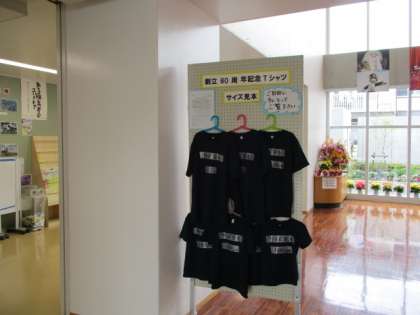 いちょうホールに記念Tシャツの見本があります。心配な方はサイズ合わせをしてみてください。出来上がりが楽しみですね。どうもありがとうございます。