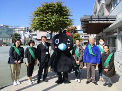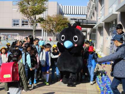 あいさつ週間初日に、からぴょんが来てくれました。大人気で、子供たちに囲まれていました。からぴょんもとても楽しかったと言って帰りました。