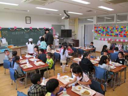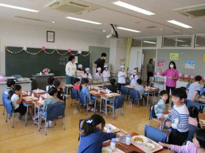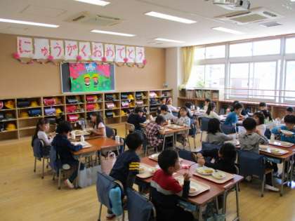 初めての給食でした。上手に配膳して落食べることができました。初めての給食は美味しかったですか?