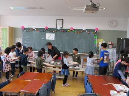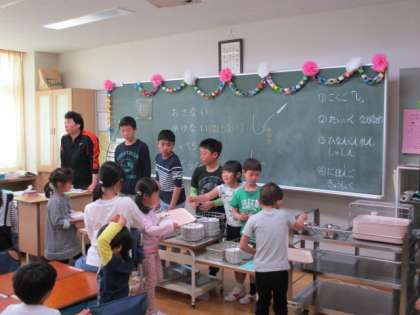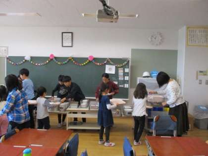給食の片付けの様子です。落ち着いてしっかりできました。
