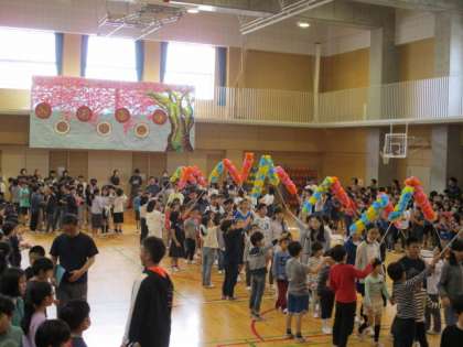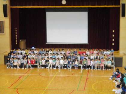 今朝、1年生を迎える会が行われました。6年生と手をつないで入場です。