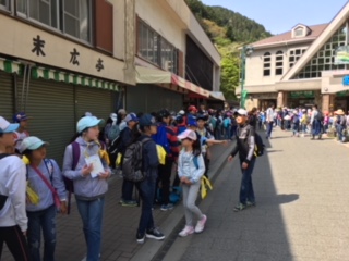 清滝駅の前につきました。これから6号路と稲荷山コースに分かれて登山が始まります。