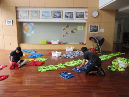 先生方も運動会に向けて本格始動です。ゼッケンの点検、プログラムの打ち合わせなど放課後に行いました。