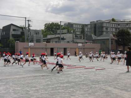 3,4年生の団体競技の練習がありました。今日は赤が強かったかな