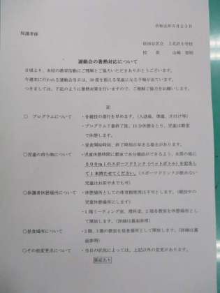 運動会当日はかなりの暑さになりそうです。どうぞご協力お願いします。