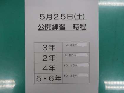明日の公開練習の時程です。表現の練習をします。参観に際しては、暑熱対策等にご留意ください。よろしくお願いします。
