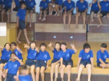 演技が終わり、体育館に走って帰ってくる子どもたち。とてもいい顔でした。「やったぜ!」って感じです。思わず私も涙・・