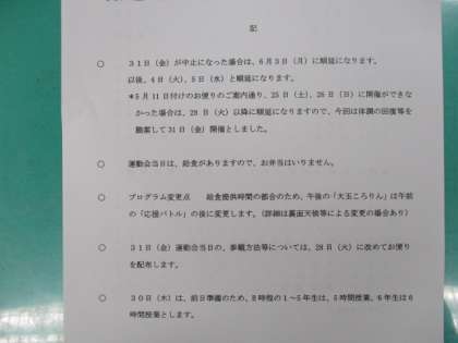 31日に順延された運動会についての配布文書です。ご確認ください。