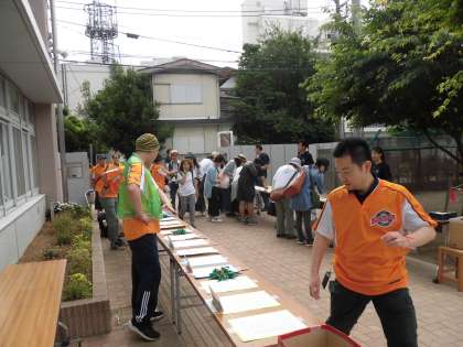開門しました。おやじの会のみなさんも平日にもかかわらずお手伝いに来てくださいました。ありがとうございます。また、PTA役員のみなさんも、お忙しい中ありがとうございます。