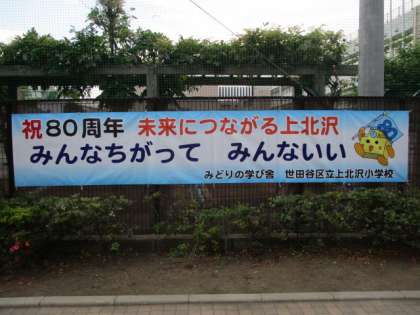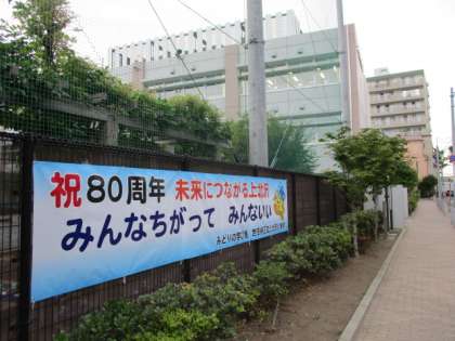 創立80周年記念の横断幕が、正門横のフェンスに設置しました。運動会でお披露目した横断幕です。その様子は、5月31日のHPでご覧ください。