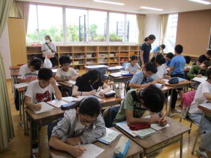 6年生の少人数算数です。単元最後のまとめのところでしたが、みんな一生懸命に問題に取り組んでいました。