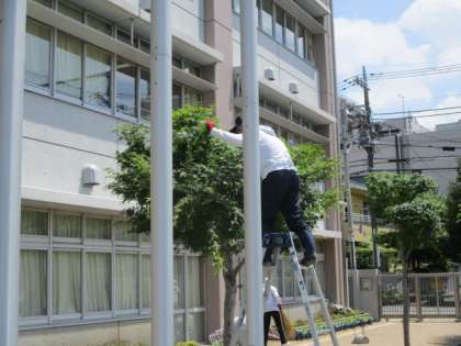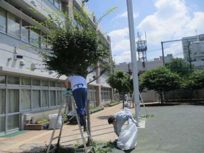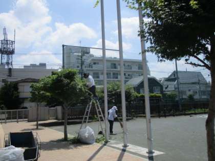 梅雨の晴れ間を利用して、主事さんたちが剪定作業をしてくれました。