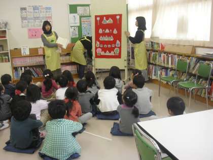 山の木文庫の方々によるお話会がありました。ひなまつりの話やことば遊びなどを含めた様々なお話を、パネルシアターや読み聞かせなどをして紹介してくれました。子どもたちはじっと聞き入っていました。本に親しむとてもよい機会となりました。