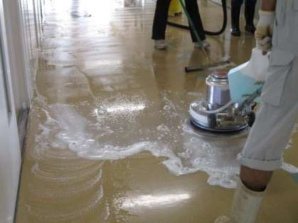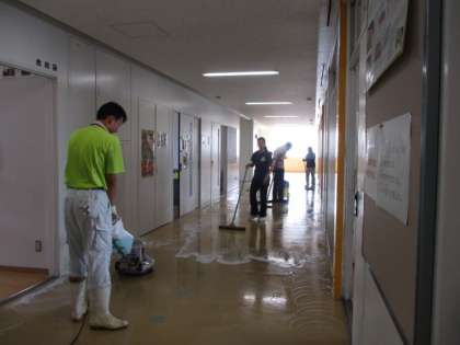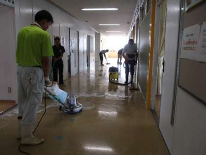 夏休み恒例のワックス掛けがありました。主事室総出で3階を攻略。