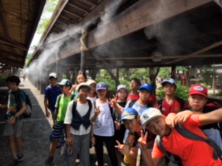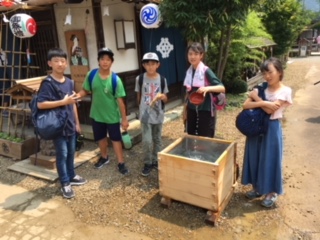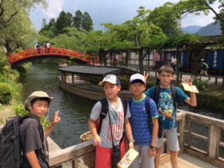 あ、暑い。村内は至るところに涼とれる場所があります。運河には屋形船も走っています。