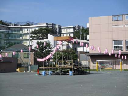 16時30分より本校校庭で上北沢納涼盆踊りがあります。櫓もでき、提灯もぶら下がり準備万端といったところでしょうか。猛暑が予想されていますので、暑さ対策をしっかりして参加してください。