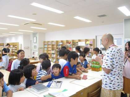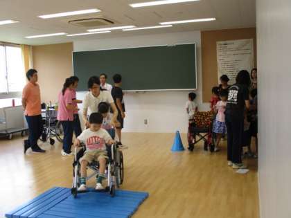 小さな絵本を作ってみよう、車いす体験教室、茶道教室の様子です。