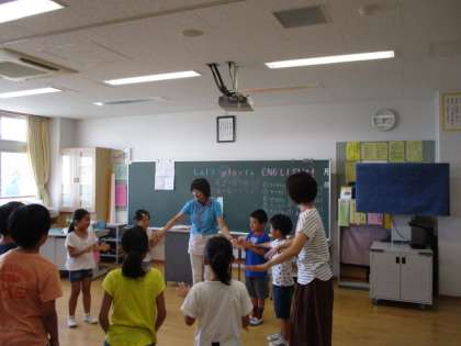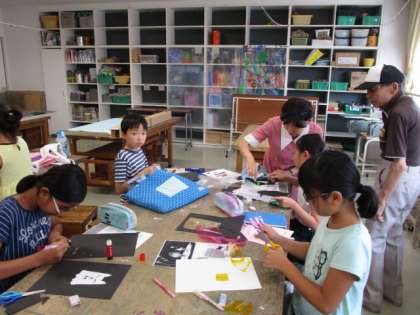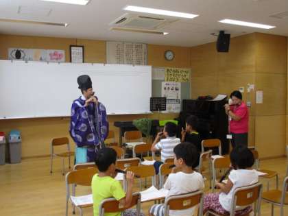 英語であそぼう、雅楽に親しもう、かげ絵教室の様子です。