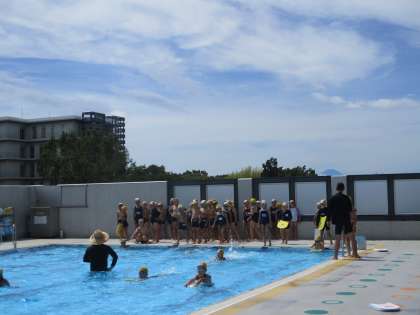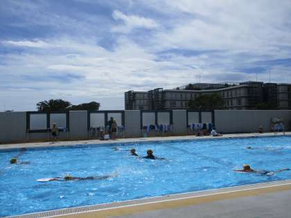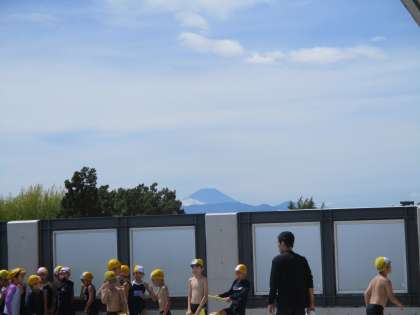 台風一過の青空の下、気持ちよさそうに泳いでいました。なんと、西の方向には富士山が!!初めて見ました。