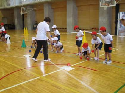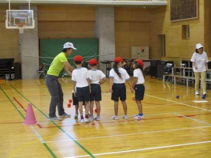 おりんぴっく・パラリンピック教育の一環で、ボッチャ体験をしました。世田谷区スポーツ推進委員の青木さまありがとうございました。