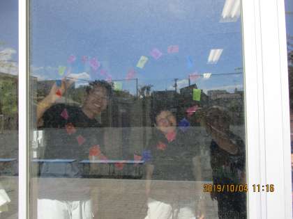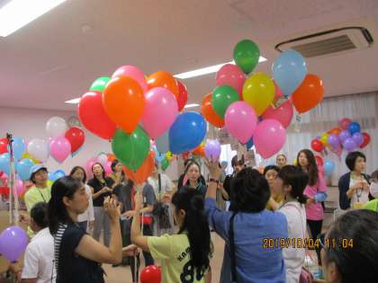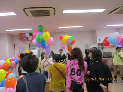 ミーティングルームで風船の準備です。主事室からも愛をこめて💛