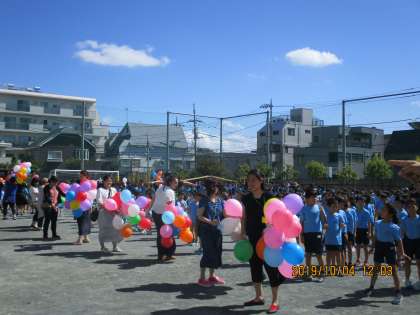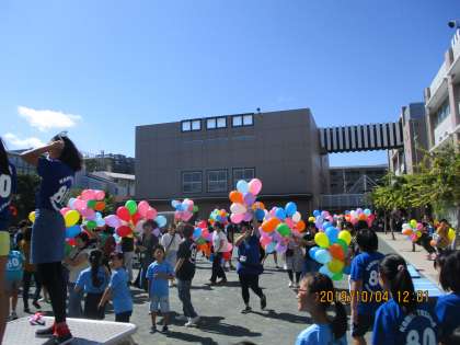 青空になり。写真映えします!PTAの方々も強風の中大奮闘!