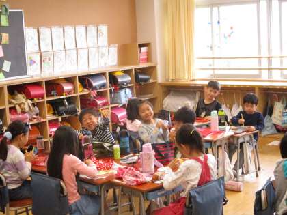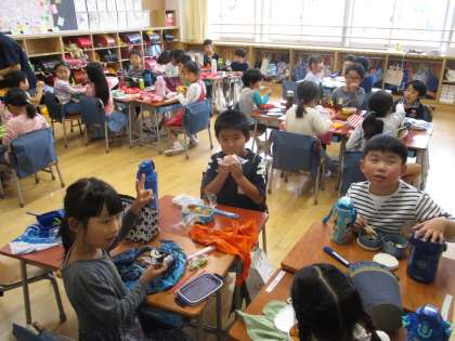 残念ながら遠足が延期なった1,2年生は今日はお弁当持参でした。給食よりお弁当がいい!と子供たち。保護者としてはうれしいやら、毎日は・・・と複雑ですね。