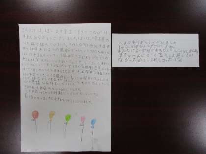 先日届いたバルーンメッセージのお返事を書きました。周年行事を通しての交流がうれしいですね!どうもありがとうございます。