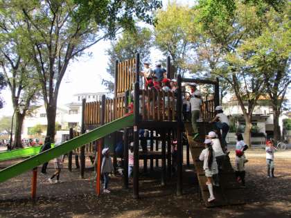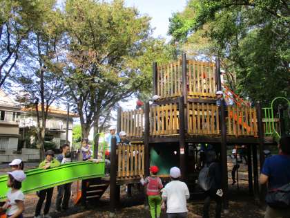 遊具で遊びました。