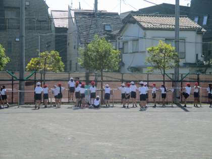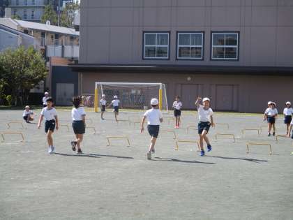 今月は雨の日が多かったですが、水曜日だけは天気がよいようです。気持ちよさそうに体育のh学習をしていました。