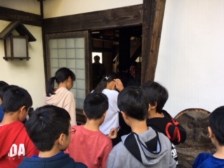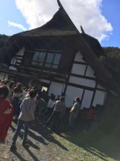 茅葺民家に入ります。敷居は踏まないようにしましょう。ちなみに茅の張り替え代は1500万円から2千万円かかるそうです。
