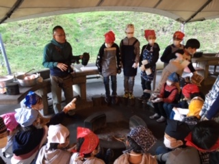 それぞれのブースに分かれて、飯盒炊さんの方法を教わります。