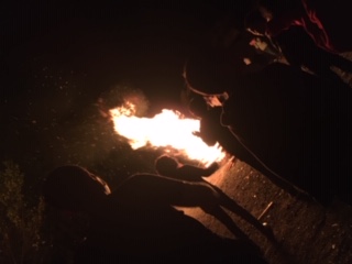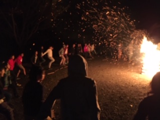ファイアを囲んで、歌い踊ります。