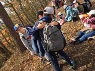 感動のゴール。抱き合って喜んでます。夏と違って秋は木々が生い茂っていないため、あたりの景色がよく見えます。