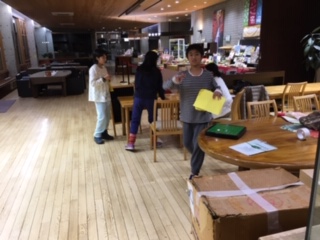 保健係が検温記録を看護師さんに報告に来たり、部屋では今日一日の反省をしたりしています。