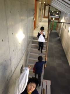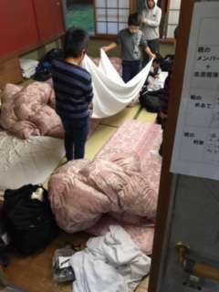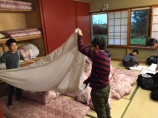 シーツを畳んでいます。この班は、手際良く片付けが進んでいます。