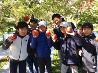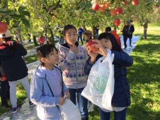 11月の移動教室だから体験できるもぎ取り。ラッキーです。