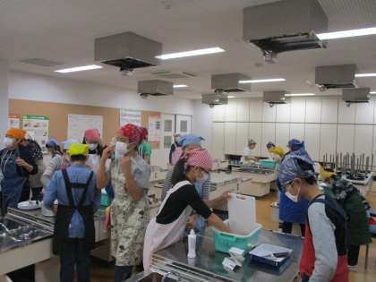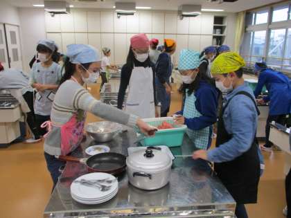 調理実習に取り組んでいます。協力して安全に作ってくださいな。