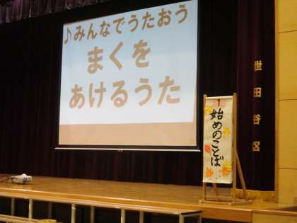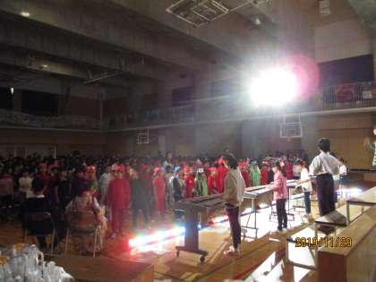 学芸会が始まりました。元気いっぱいの歌声と1年生のはじめのことば。がんばりました!会場が暗いため画像がよくありません。あしからず。