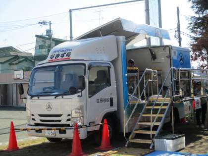 世田谷区の起震車なまず号が来てくれました。震度7の揺れを体験しました。想像以上に怖いですね。実際にあったらと思うと・・・発災の備えと心の準備が必要だと実感しました。
