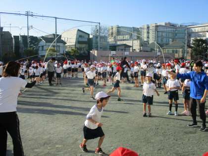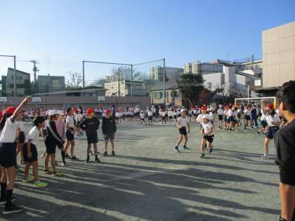 所狭しと各クラス長縄に取り組みました。自己最高は出たかな?