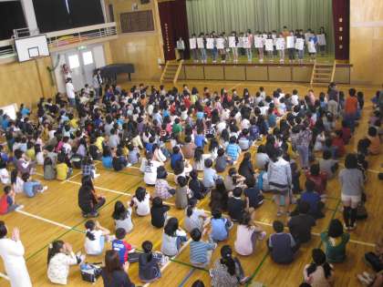 4月28日の児童集会で、代表委員の紹介がありました。各クラスの代表委員、委員会の委員長、なかよし班グループリーダー、計画委員の児童が、それぞれどんな活動をしていくか抱負を述べました。どの児童も大変立派でした。「初心を忘れるべからず」です。気持ちを行動にしてほしいと思います。集会が終わった後、校長先生から「代表委員であるみなさんは学校の頭です。たくさん考えて、よい知恵を出して下さい。」とお話がありました。これからの、活躍で本当の代表委員になっていく姿に期待しています。