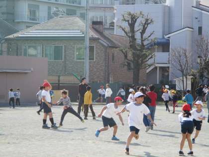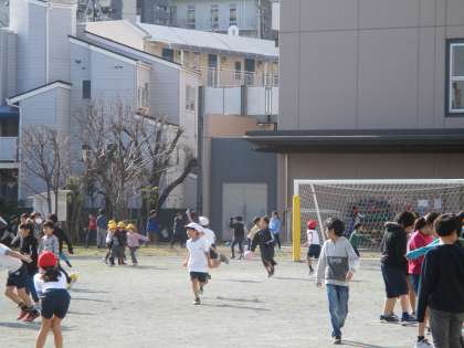 たくさんの子どもたち、先生たちが昼休み元気に遊んでいました。