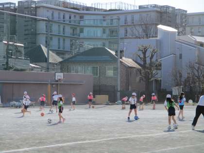 校庭では3,4,6年生がボールを使った運動をしていました。
