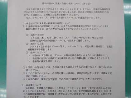 世田谷区より臨時休業中の児童・生徒の生活についての連絡がありました。ご確認ください。