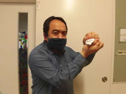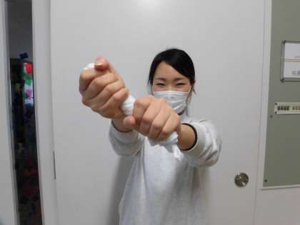 きょうは、ぞうきんの しぼりかたのしぼりかたの もんだいです。いちばんじょうずにしぼれているのは だれせんせいでしょう。1、うえ かさいせんせい 2、なか やまもとせんせい 3、した はらぐりせんせい