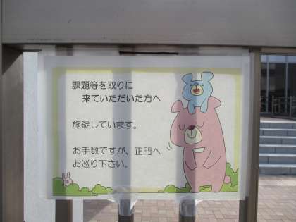 昨日は、課題等の受け取りご協力ありがとうございました。本日も9時から19時まで受け取りを実施していますので、引き続きよろしくお願いします。