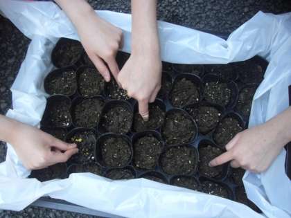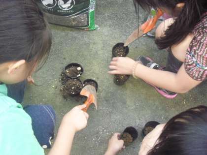 みんなとても優しい表情で、小さな種が風で飛ばないようにやさしく植えていました。