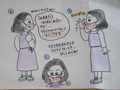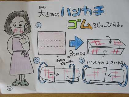 今回は、かんたんな手づくりマスクの作り方を教えます。いろいろなマスクが手に入るようになってきましたが、家族でたのしんでみてください。