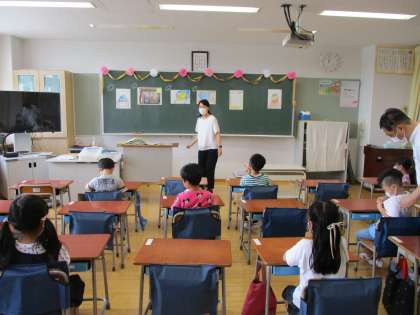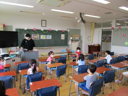 1時間目の1年生は、先生の話を聞いたり、名札をつけたりしました。一生懸命な姿に感動です!